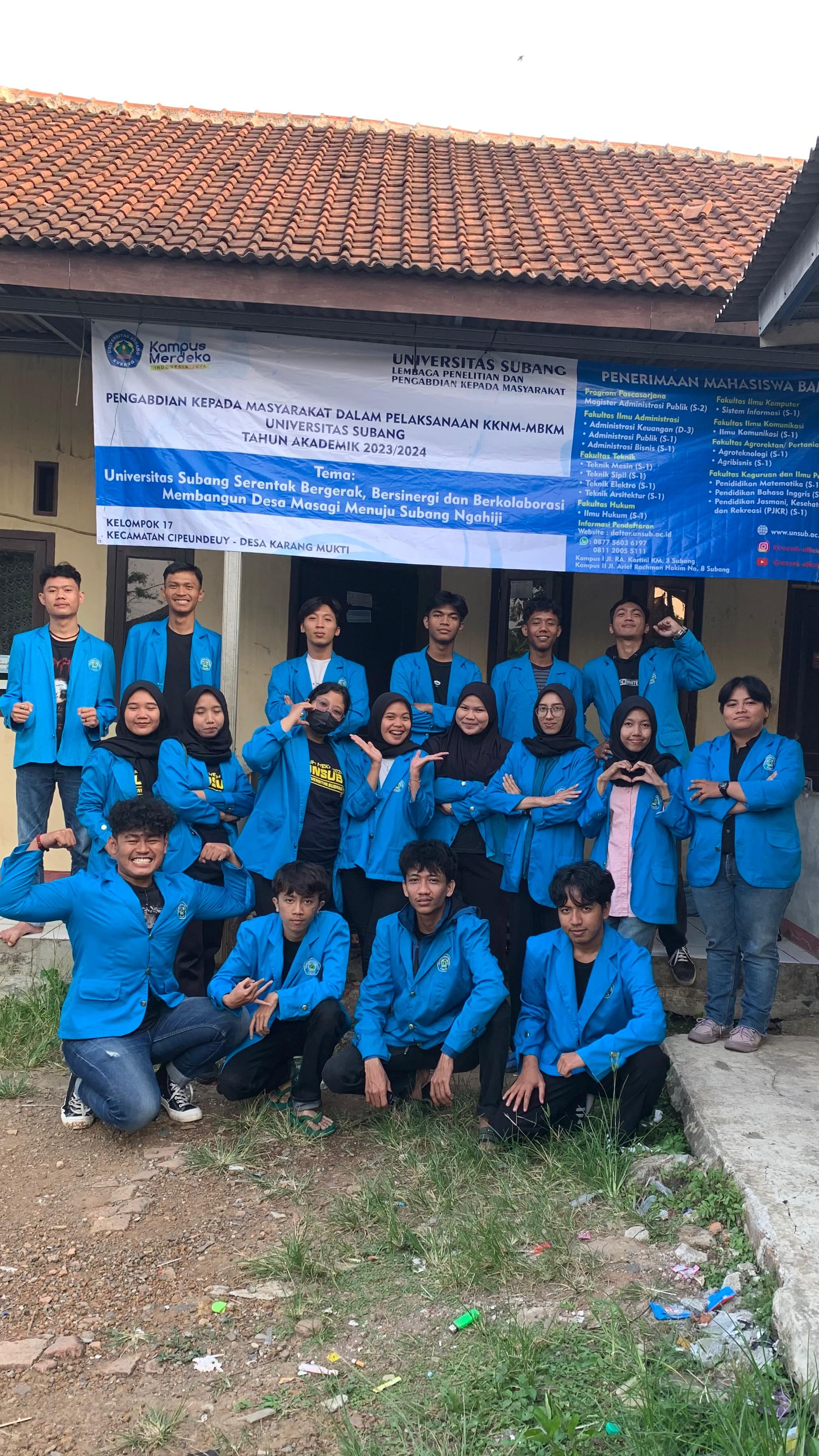 Perkenalkan, kami Mahasiswa dari Universitas Subang yang terdiri dari berbagai fakultas seperti Fakultas Ilmu Administrasi, Fakultas Ilmu Komputer, Fakultas Teknik, Fakultas Pertanian. Yang telah melaksanakan KKNM di Desa Karang Mukti, Kec. Cipeundeuy, Subang.